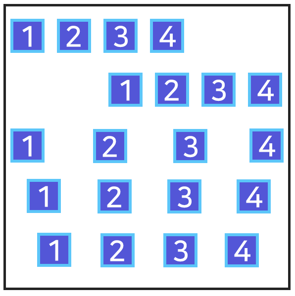 space-around(아래에서 두번째)와 space-evenly(맨 아랫줄)의 차이는