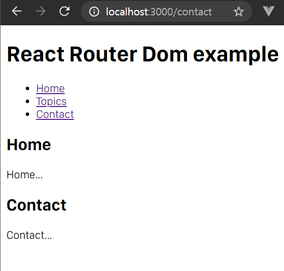 이를 해결하기 위해서는 Home에 exact를 붙이거나 Home 라인을 Contact 아래로 내리면 된다.